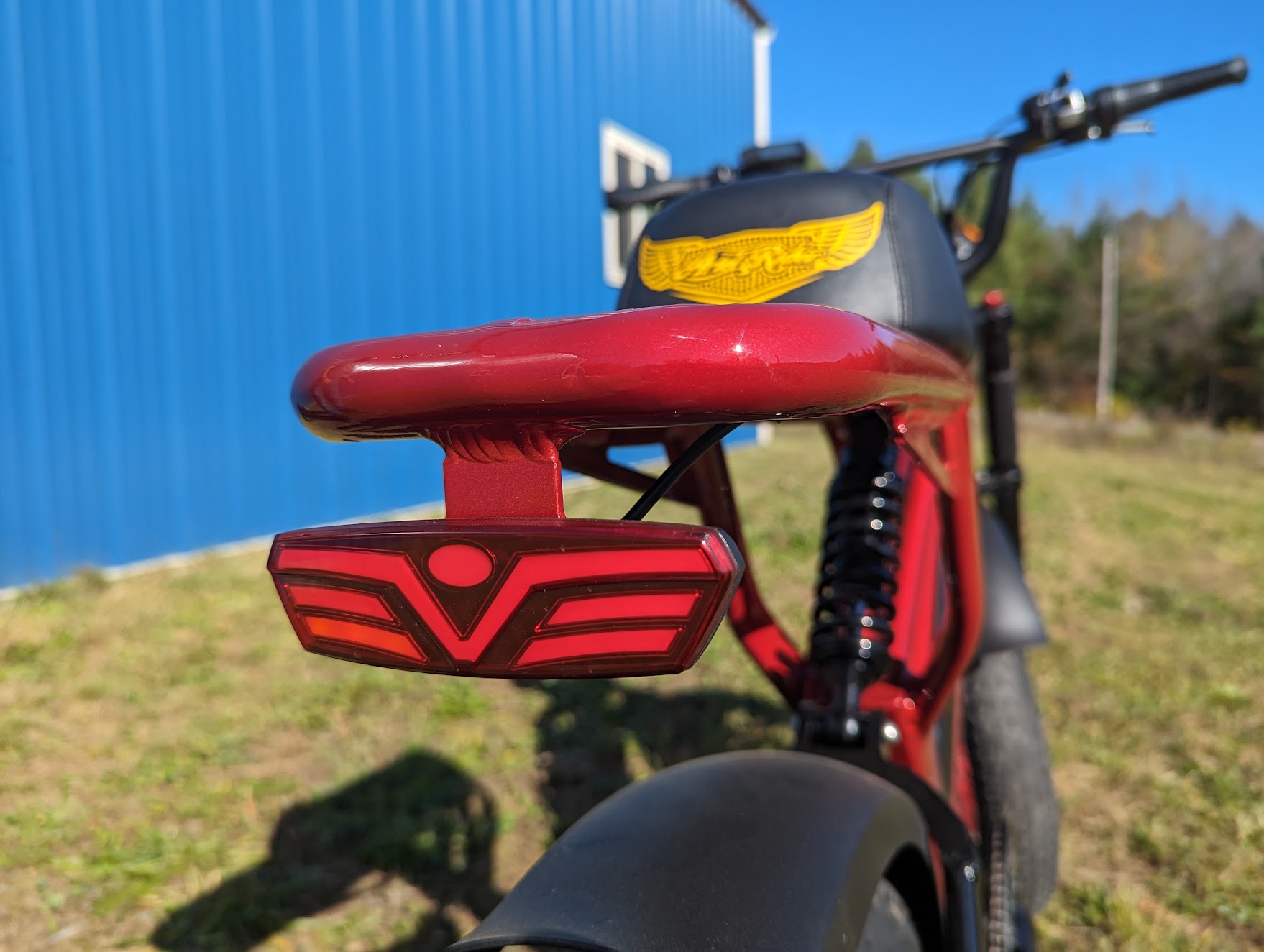 Moto-styling extends beyond aesthetics to include functional features like headlights, taillights, and blinkers. Despite dimness, the blinkers still contribute to road safety. The automatically activating brake lights also increase safety on the road.
