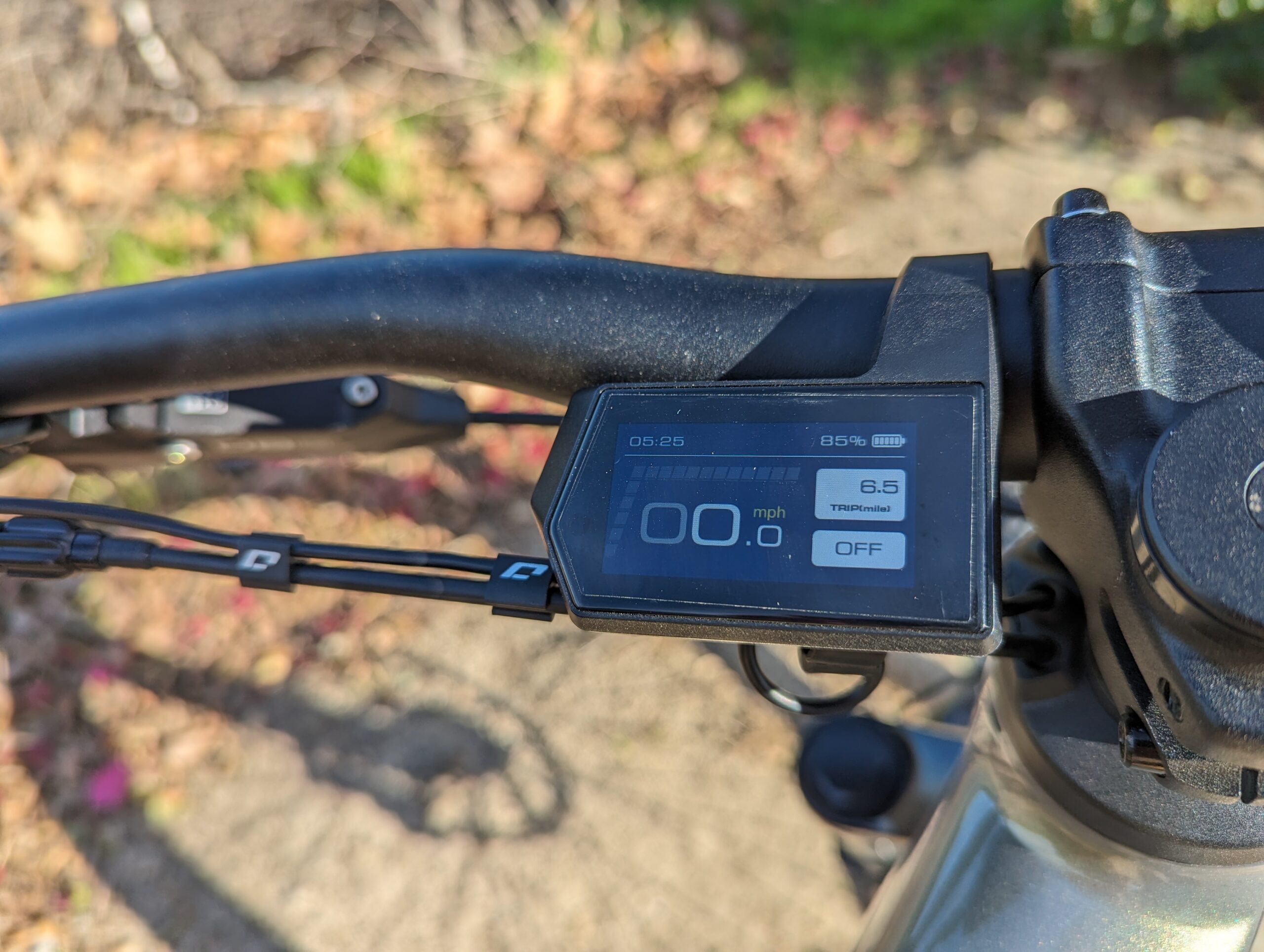 A compact display is easy to use via a neat button pad on the left handlebar, with speed front and center, time, and battery top left and right, respectively. Intuitive functioning via the power button cycles through other screens including odometer and trip information and accesses App Integration for fine tuning.