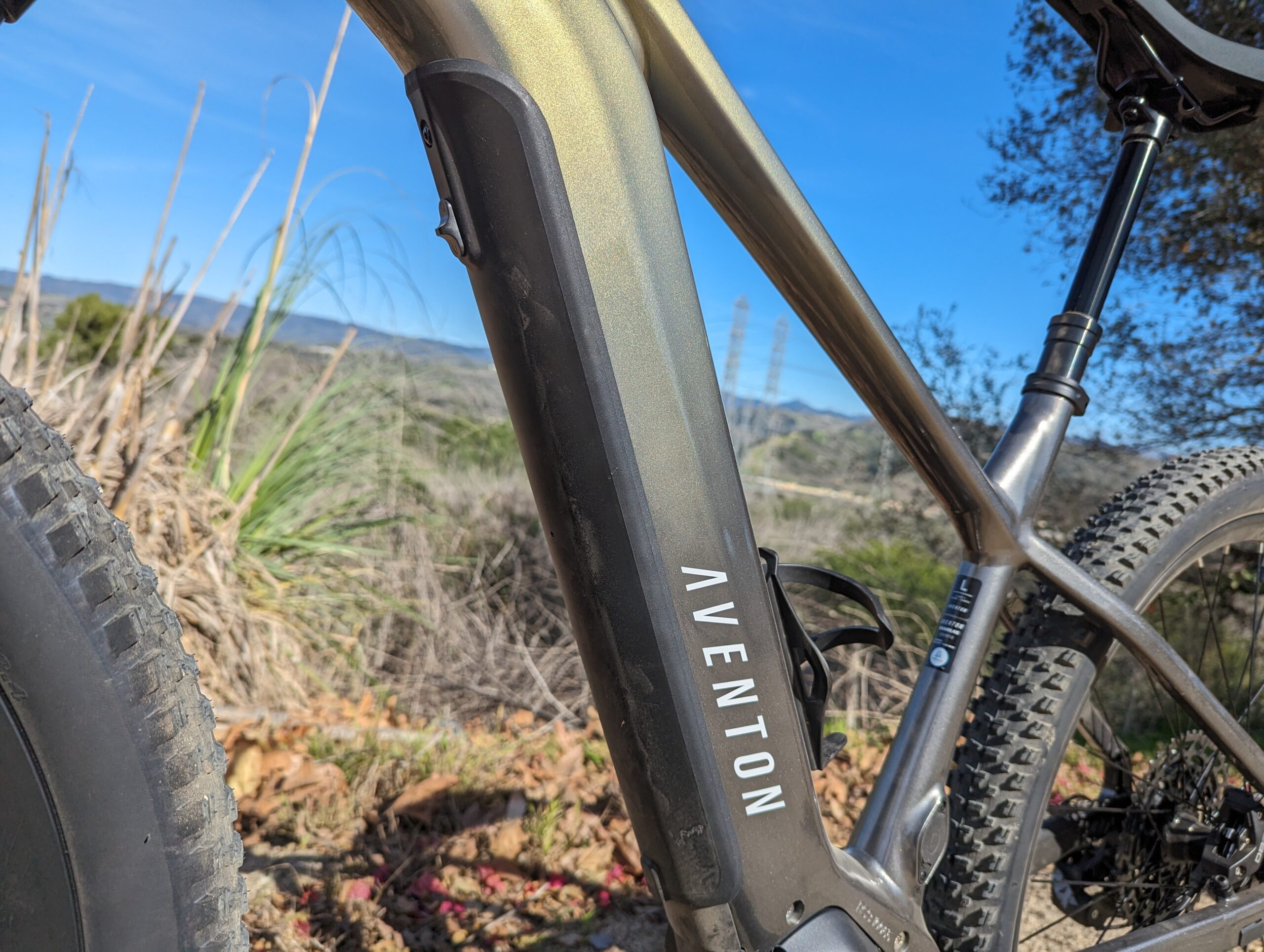 Battery capacity is excellent from the large 36V, 19.2AH pack using LG cells, complete with UL 2849 certification. Aventon advertises three different ranges of 40, 60, or 80 miles, depending on pedal assist though that range wasn’t on mountain bike single-track. Terrain and rider size also affect the range, but the battery easily held out for our day of off-roading. We ended the day which included several hours of riding with slightly over 50% bttery, playing in all three pedal assist modes. A generous 4A charger means a full charge in about 5 hours and it’s nice to be able to do this on or off the bike.