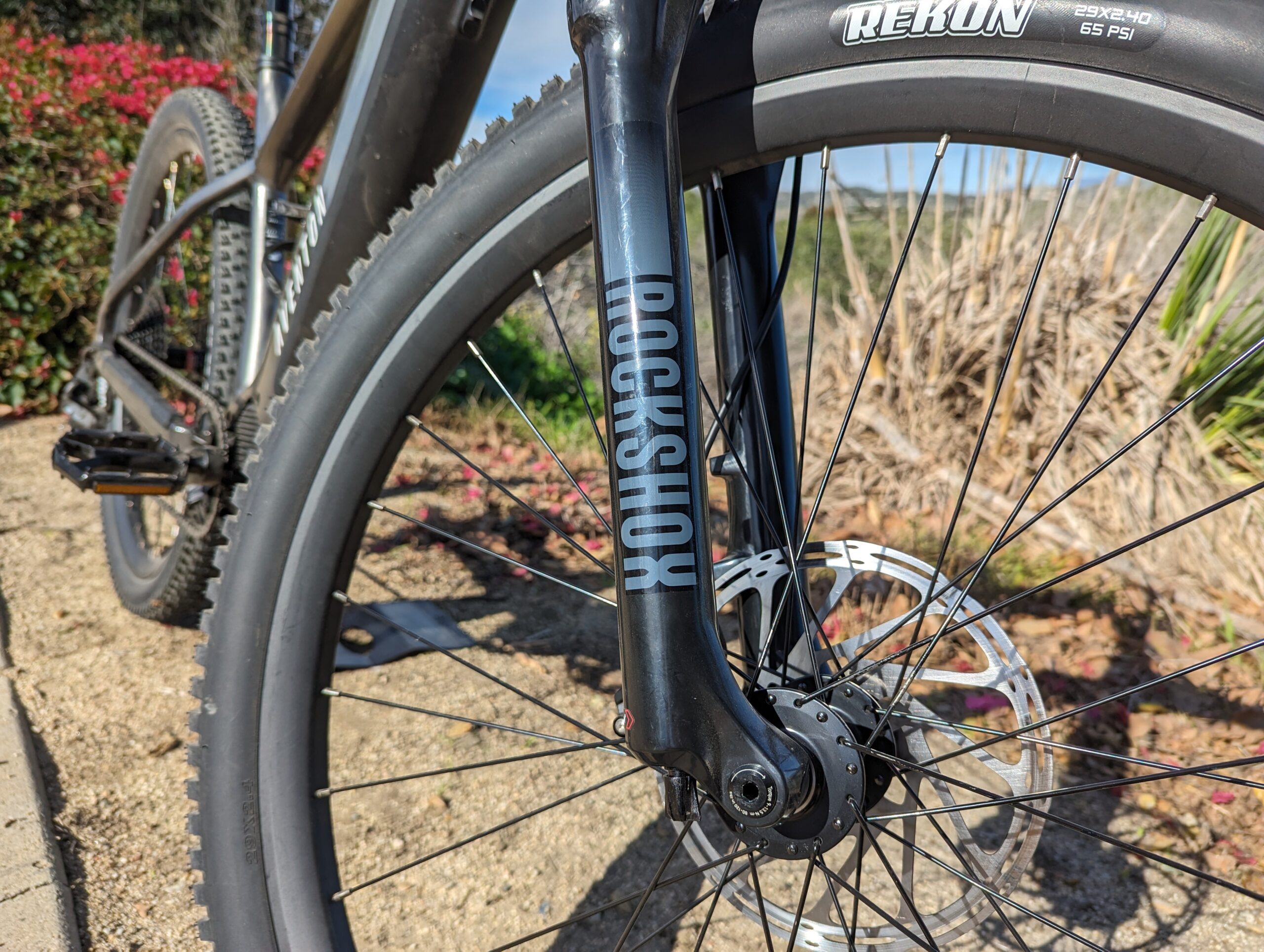 Maxxis Rekon tires are 29” by 2.4”, which can be enhanced up to 2.6” and there’s a sturdy thru-axle up front. Boost spacing at front and rear are also attractive features for the off-road enthusiast looking for upgrades. Plus the And a KS dropper seatpost lever in the cockpit is great for downhill drops.