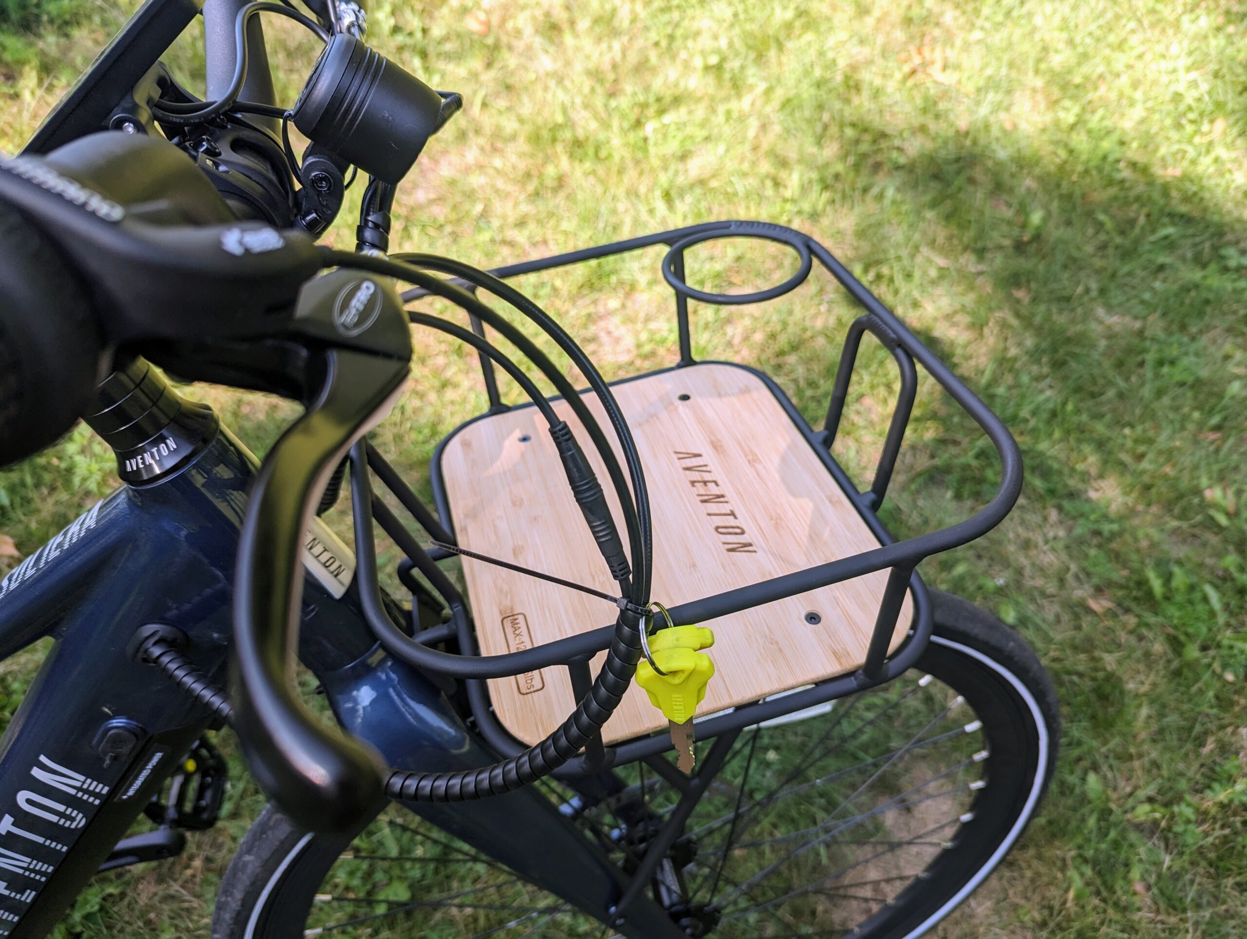 A sturdy front basket is available to carry up to 26lbs, with an Aventon-branded wood board and neat cup holder; retails at $54.99. And the rear rack for $67.99 offers bonus pannier capacity. The bike ships with a useful accessories box and reusable packaging that can be converted into a cardboard chair (Seriously!).