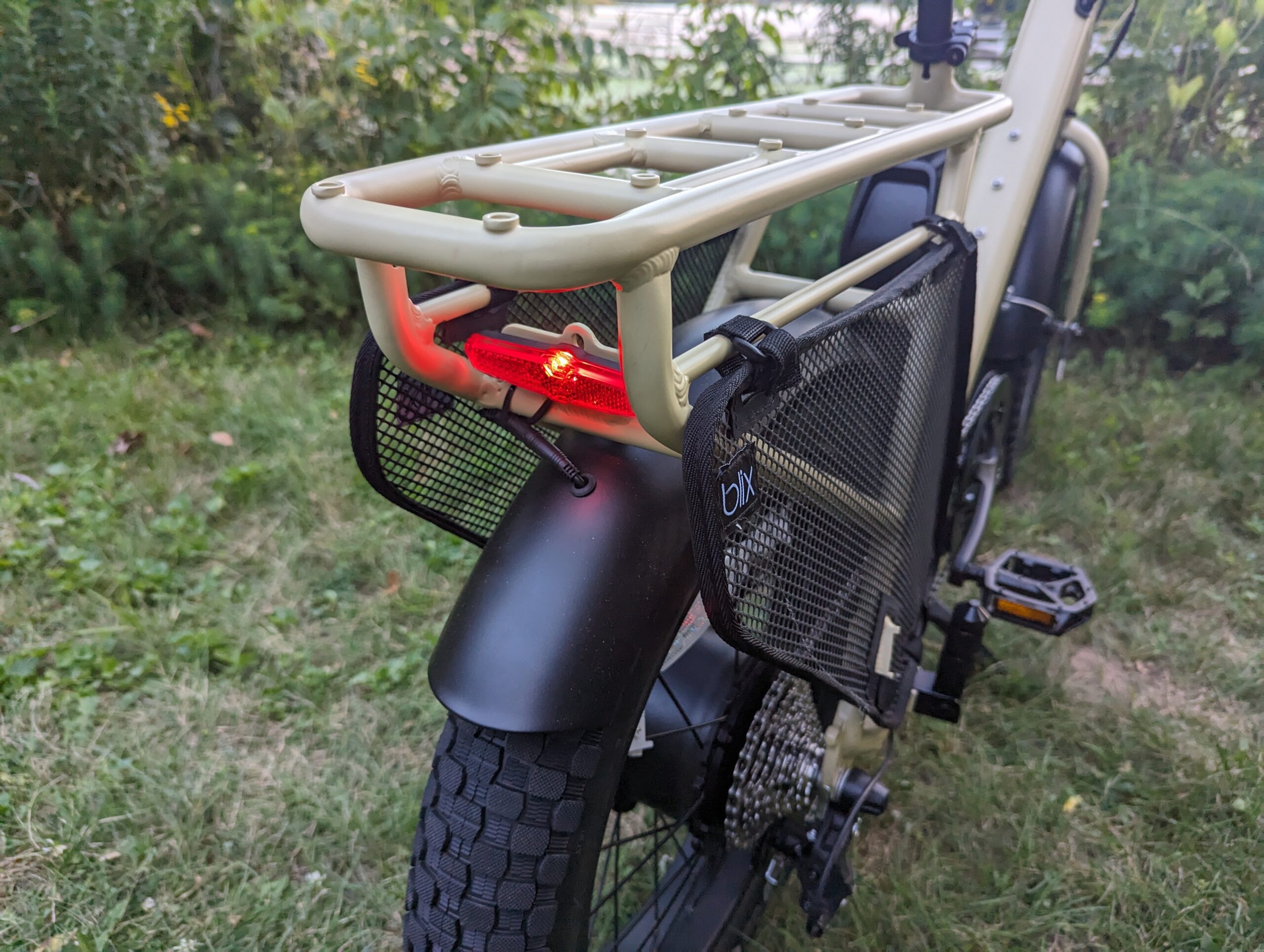 For enhancing passenger and load-carrying capabilities it is certainly worth adding front or rear rack baskets ($79 and $89 respectively) or amping up to the Large Basket at $129 or “VIP section” offering a more secure ride for kids at $149. An ample padded seat is $79 and a sweet triangle frame bag is the same price, though it inhibits the step-through!