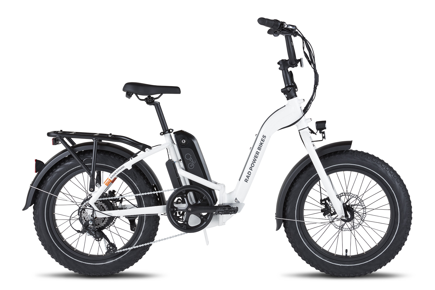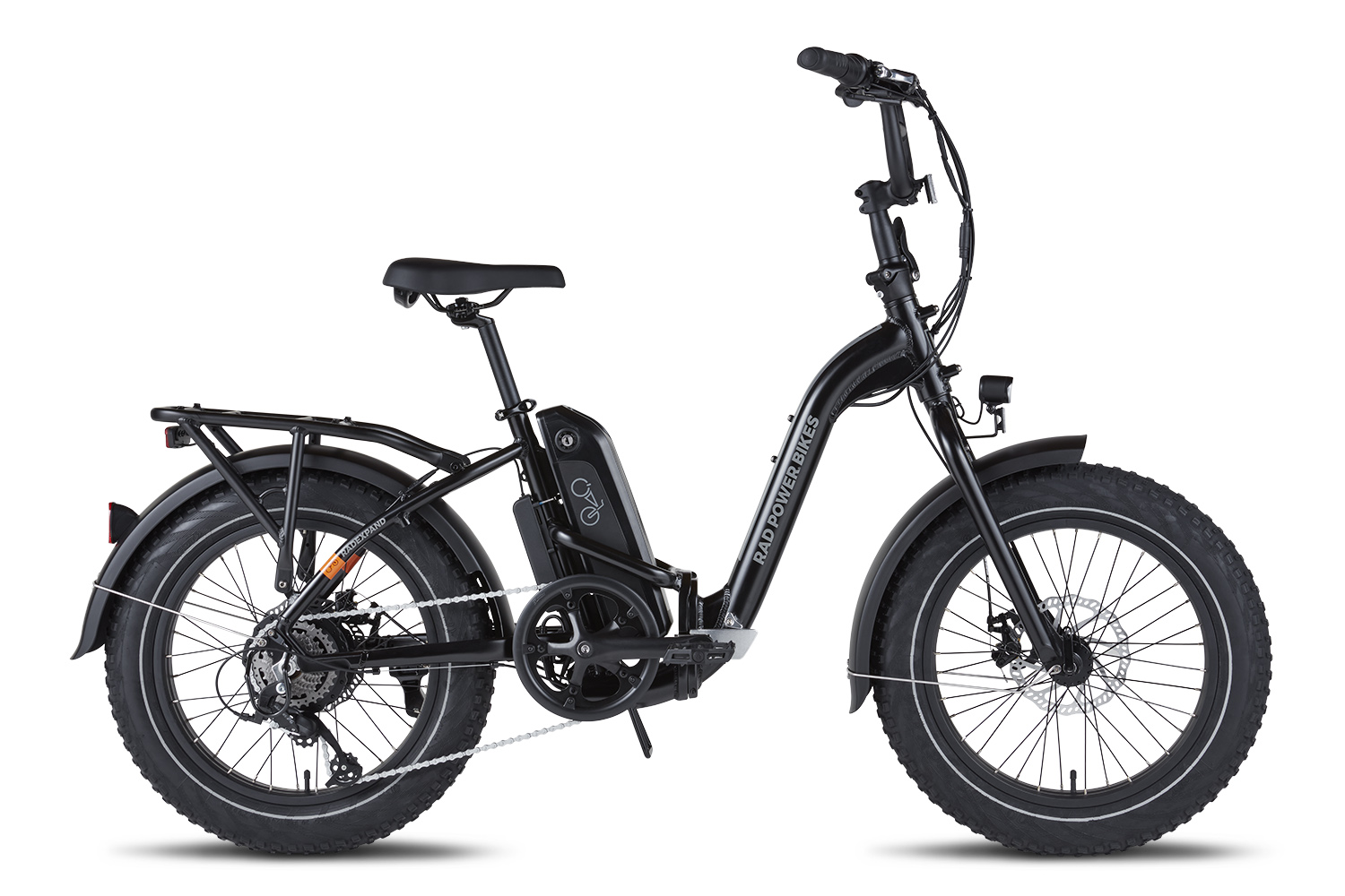Besides the rear rack, the RadExpand 5 includes front and rear plastic fenders. For increased safety, you’ll find an integrated front light that mounts to the front fork and in the rear another integrated light that mounts to the rear rack. The tires have reflective sidewalls for increased visibility. Check out Rad’s full lineup of compatible accessories to see how you can customize it to make it your own.