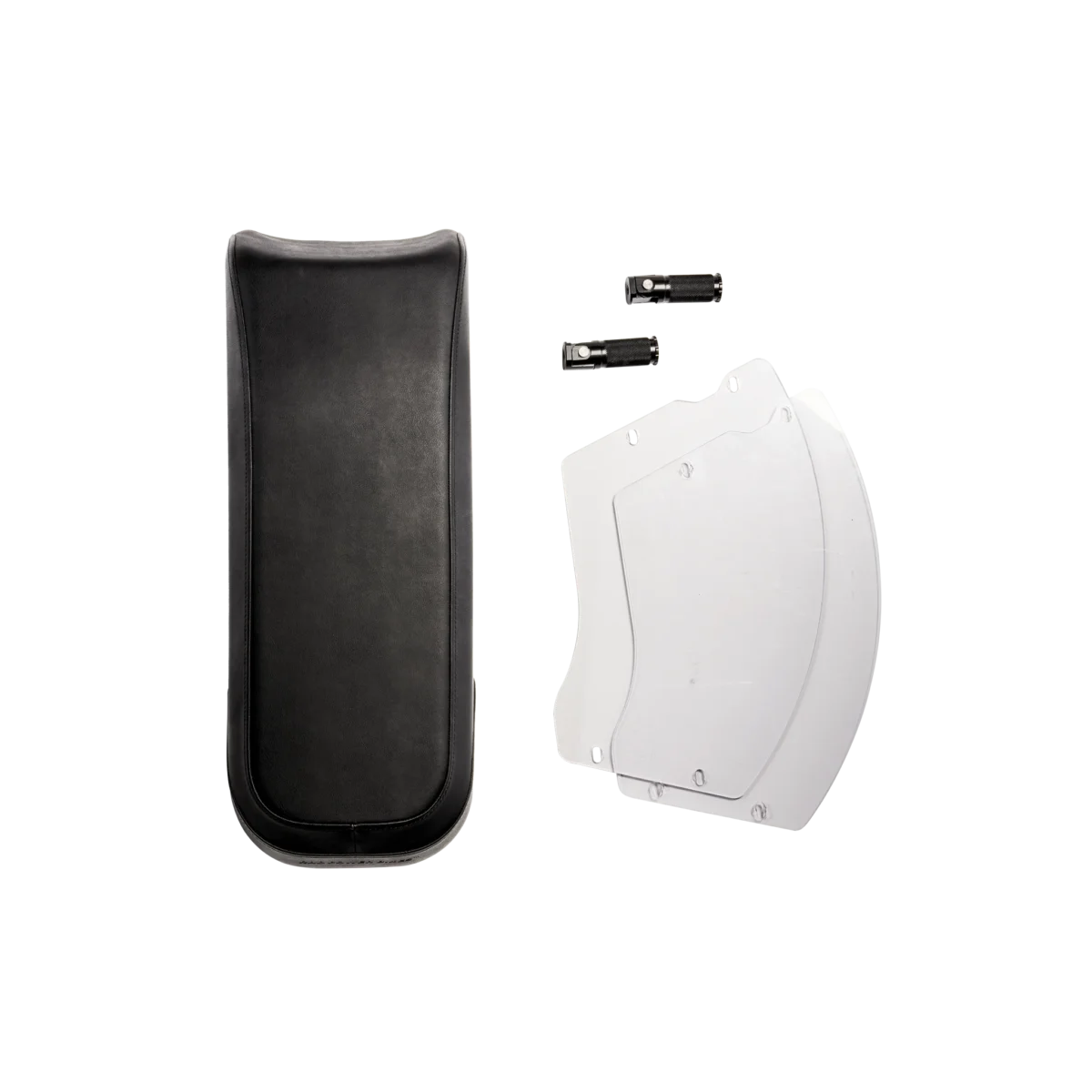 This is a required accessory to be used with the Caboose. It includes the padded rear passenger seat, retractable footpegs, and clear protective wheel skirts to keep small feet safely away from the rear wheel.