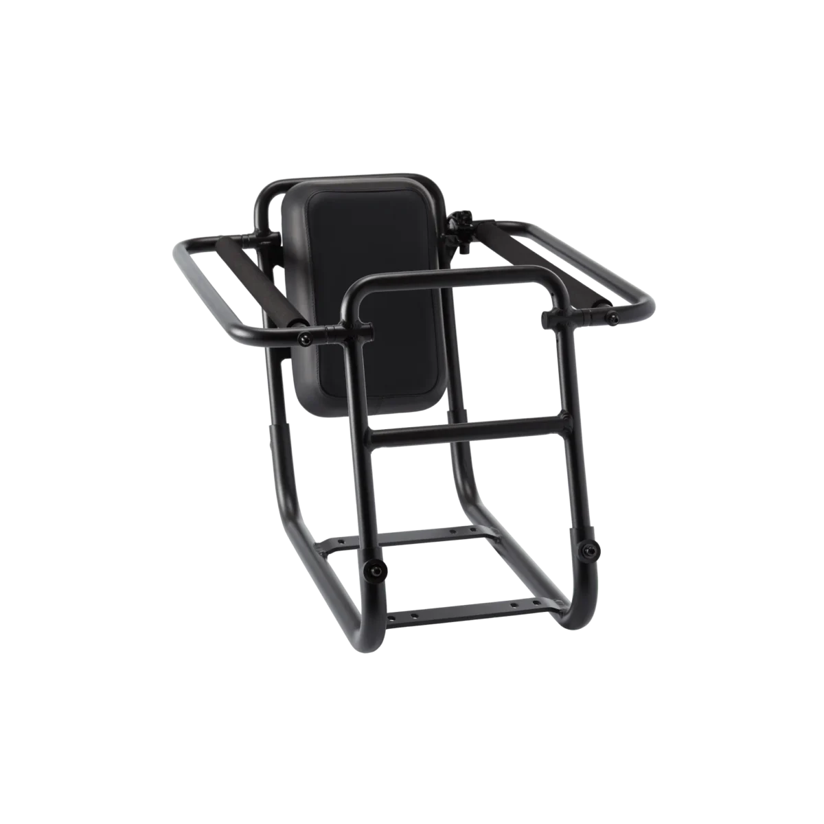This sturdy, wrap-around frame creates a secure and protected space for an older child to ride on the back. It features a padded backrest and a retractable entry bar, making it easy for kids to get on and off safely.