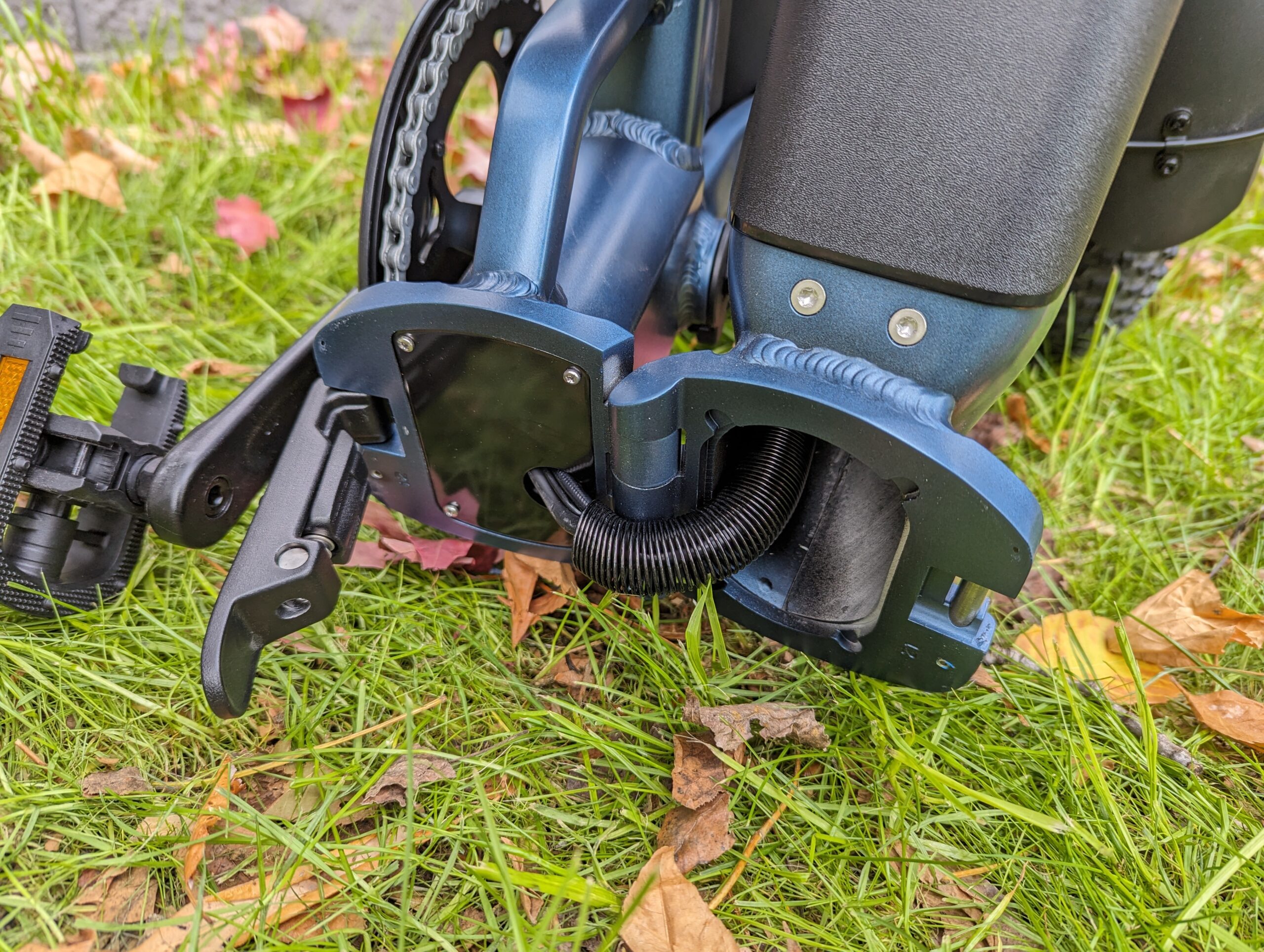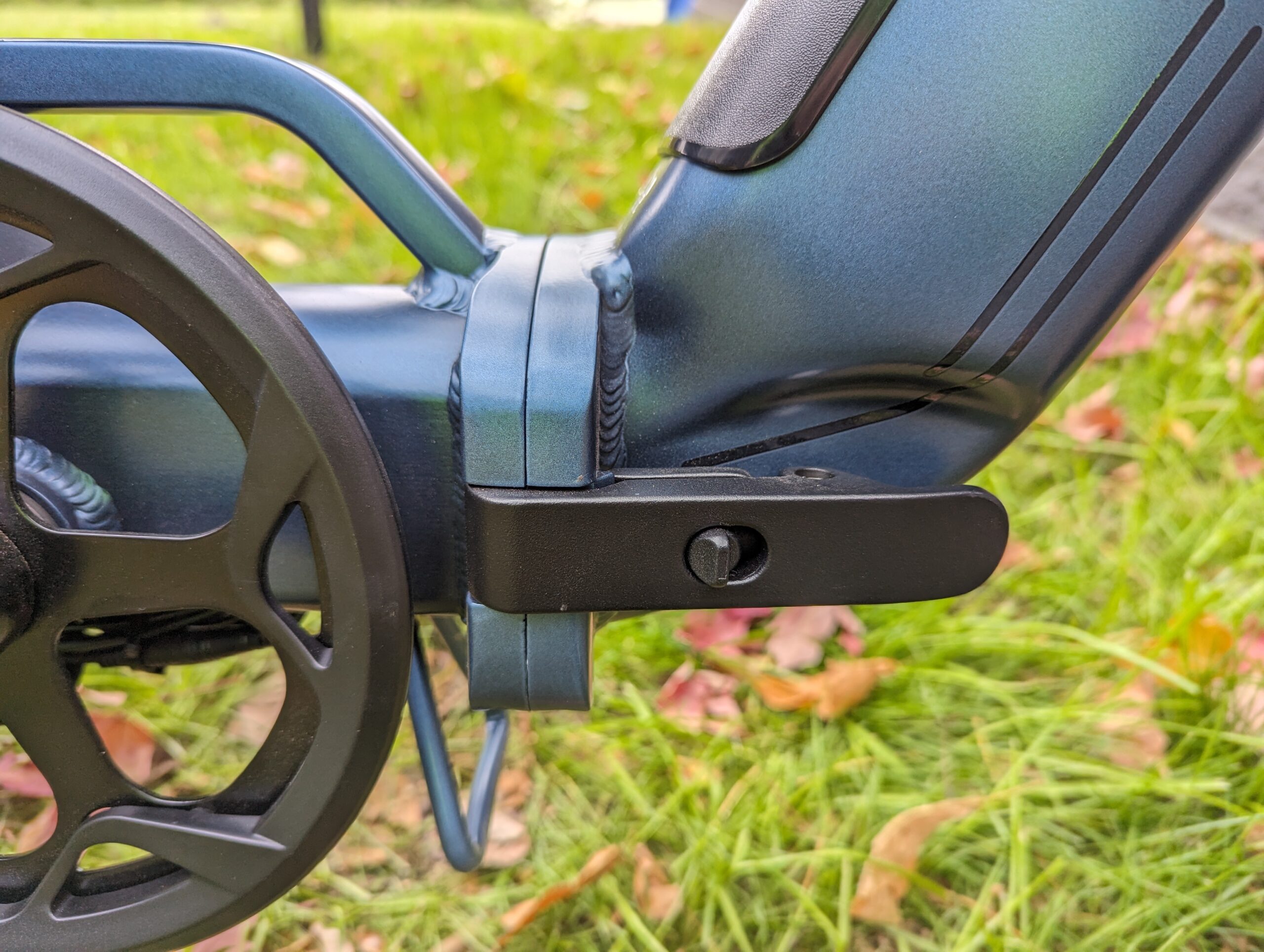 The Portola has a pretty slick folding mechanism, via the handlebars, pedals and at the base of the frame. Ride1Up has also done a great job of wrapping the cabling so it won’t get trapped in the fold. A simple strap keeps the folded ebike together when moving the bike around.