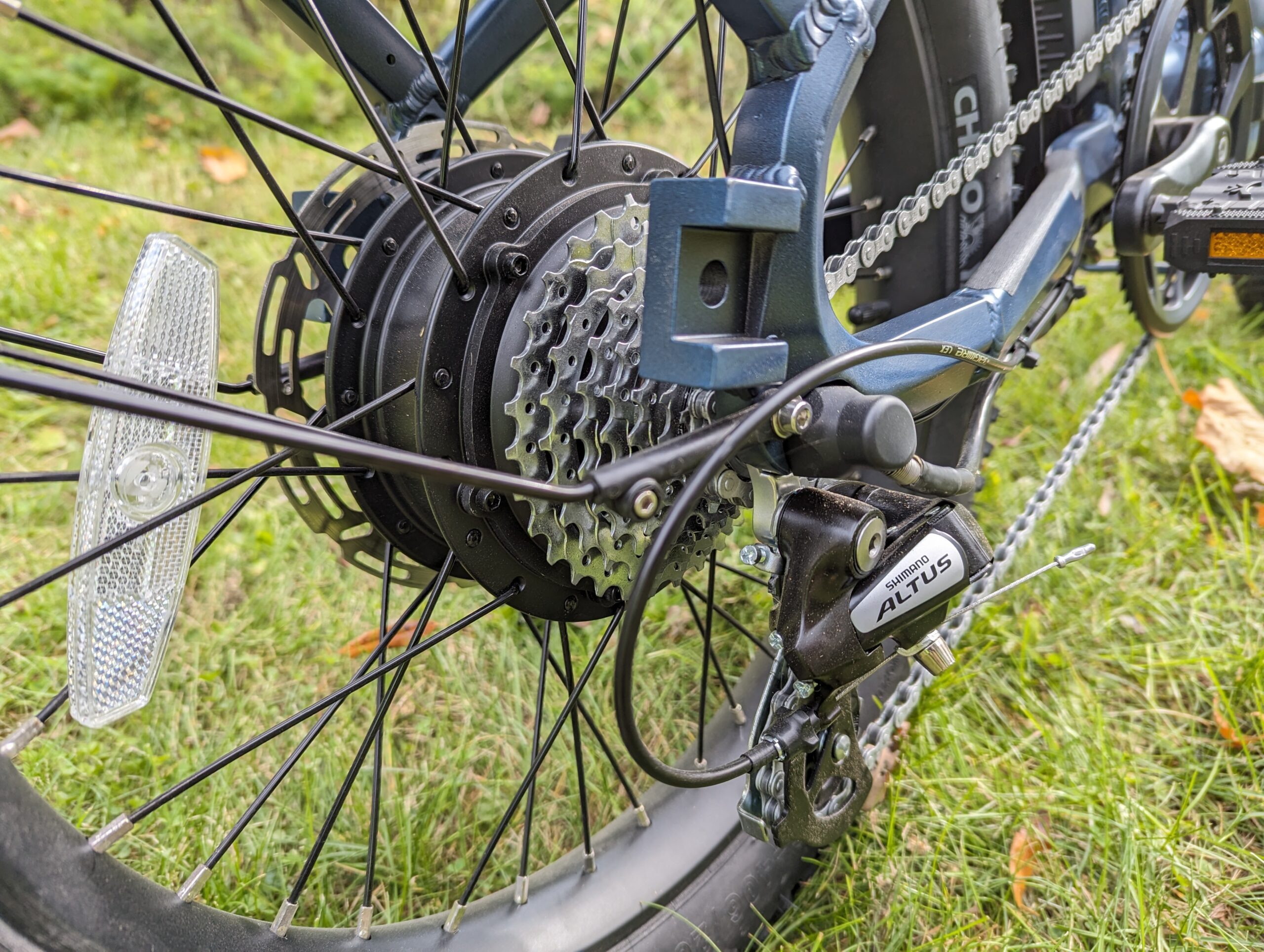 At this price point, it’s amazing to see an 8-speed Shimano trigger shifter, with accompanying Shimano Altus rear derailleur. A 48 tooth front chainring, with 11-32 teeth in the rear is more than adequate.