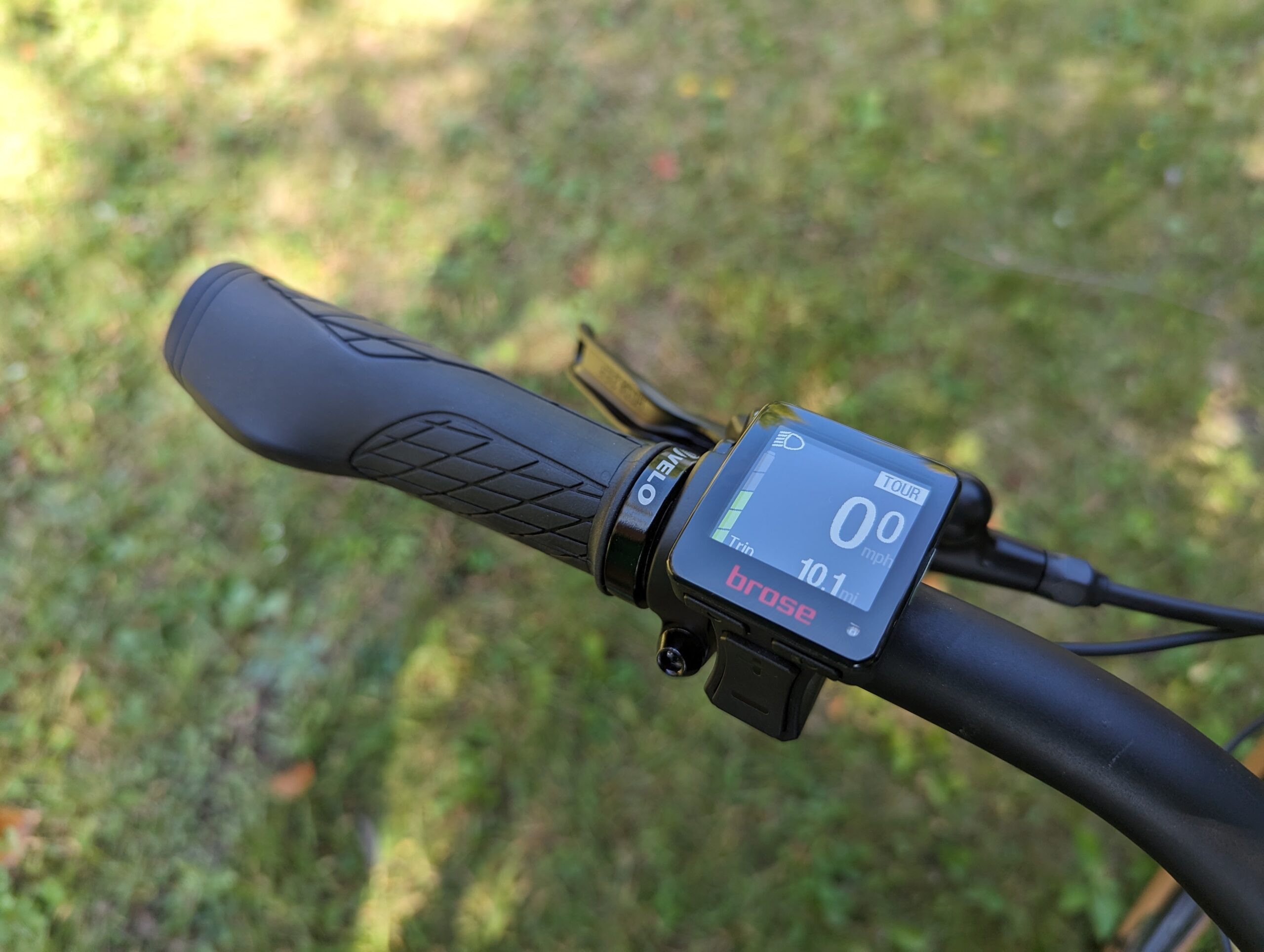 The minimalist Brose display is a little small to see especially in bright sunlight, but the compact buttons at the bottom easily cycle through the features, including, odometer, power use, and trip history.