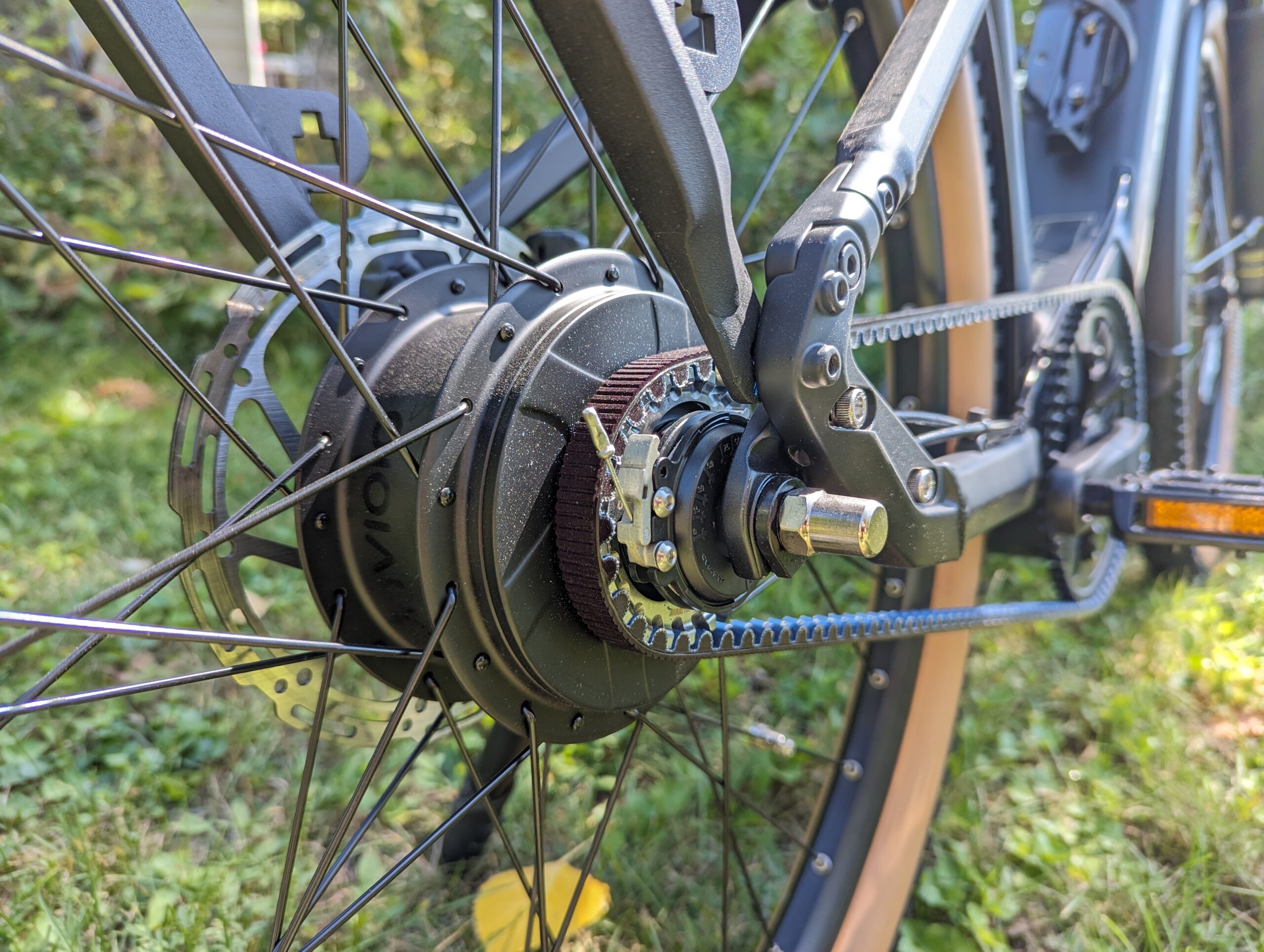 The higher-priced edition, dubbed “with CVT, includes a sophisticated Gates carbon belt drive, offering a smoother ride while minimizing maintenance. Paired with a high-end Enviolo internally geared hub, all the gears are housed in the rear wheel. All you see is the belt and a cable which moves as you turn the Enviolo twist shifter in the cockpit. This premium component should be good for up to 20,000 miles of cycling, all with no messy chain.