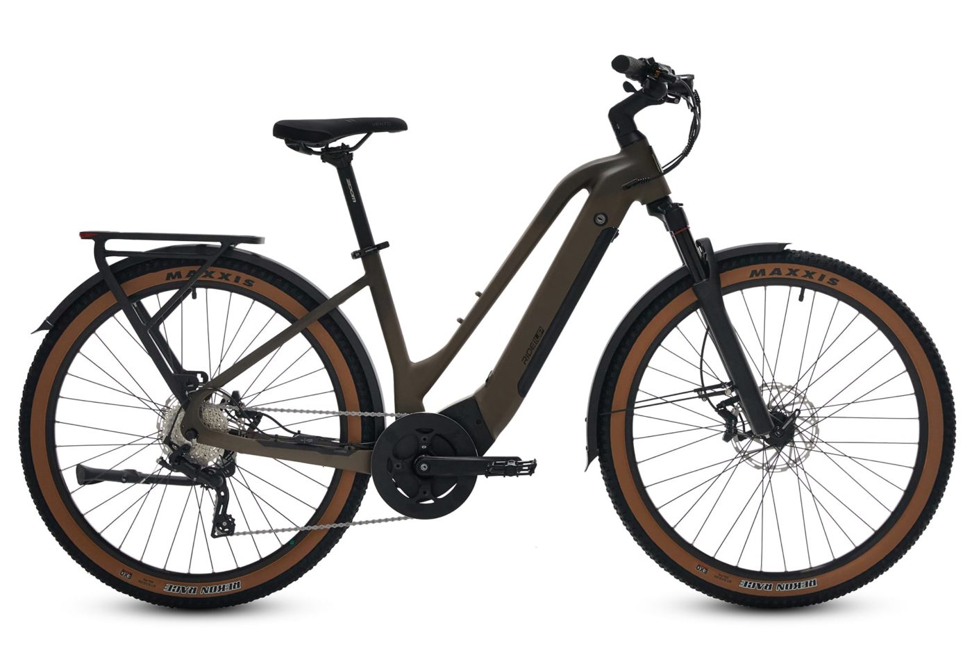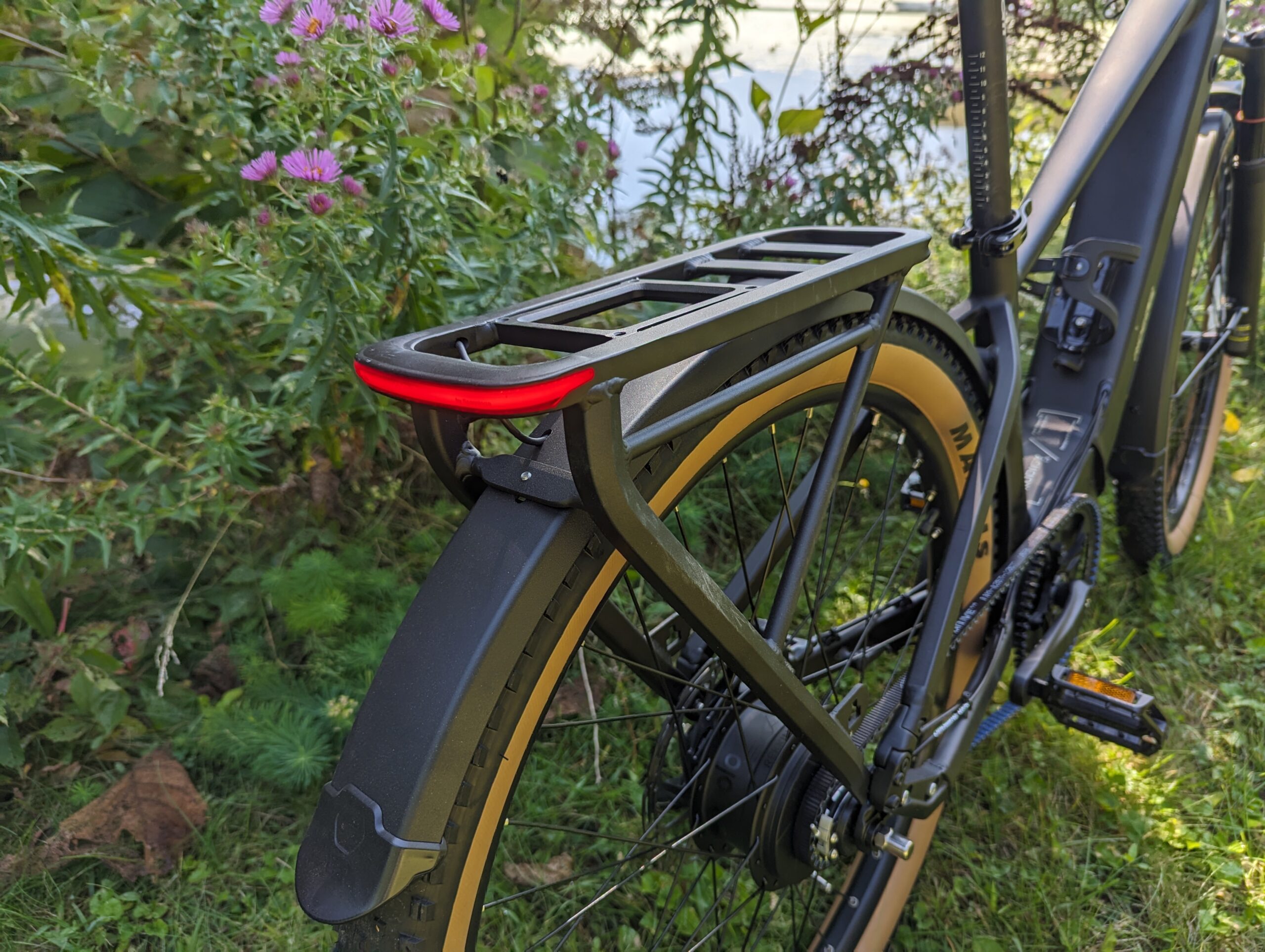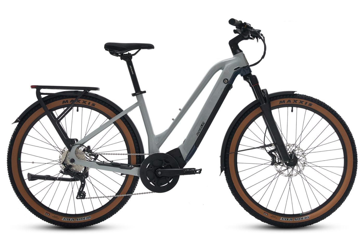 With a lockable air suspension front fork – giving 100mm travel – and Maxxis Rekon Race heavy tread tires, measuring 27.5”x 2.25”, there is an option to take this versatile ebike off-road. And metal fenders at front and rear make for a cleaner commute.