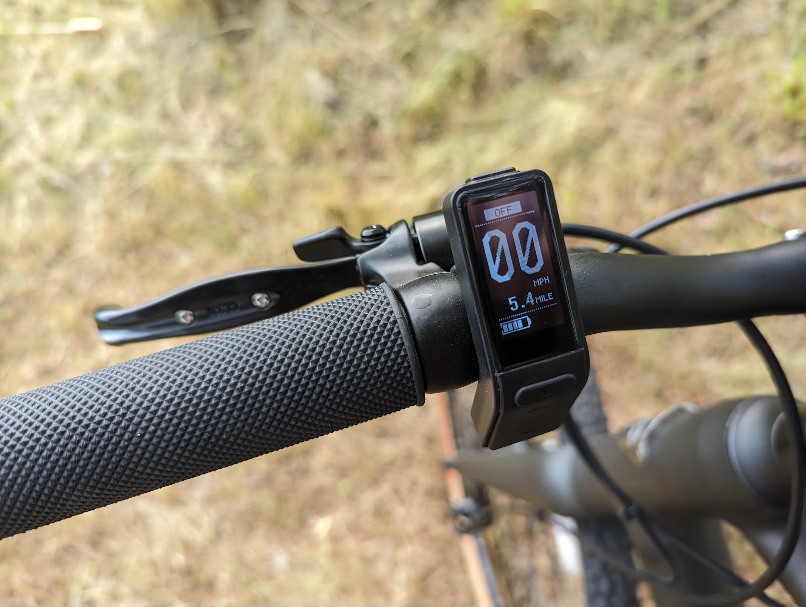 The version of the Roadster V2 Gravel we were able to review did not have a throttle, but you can get this ebike with a throttle if you prefer. That will increase the price to $1,345. Keep in mind any throttle usage will eat into the small battery quickly so you’ll want to use it sparingly. The throttle version also sports a less sleek looking display with the throttle attached to it.