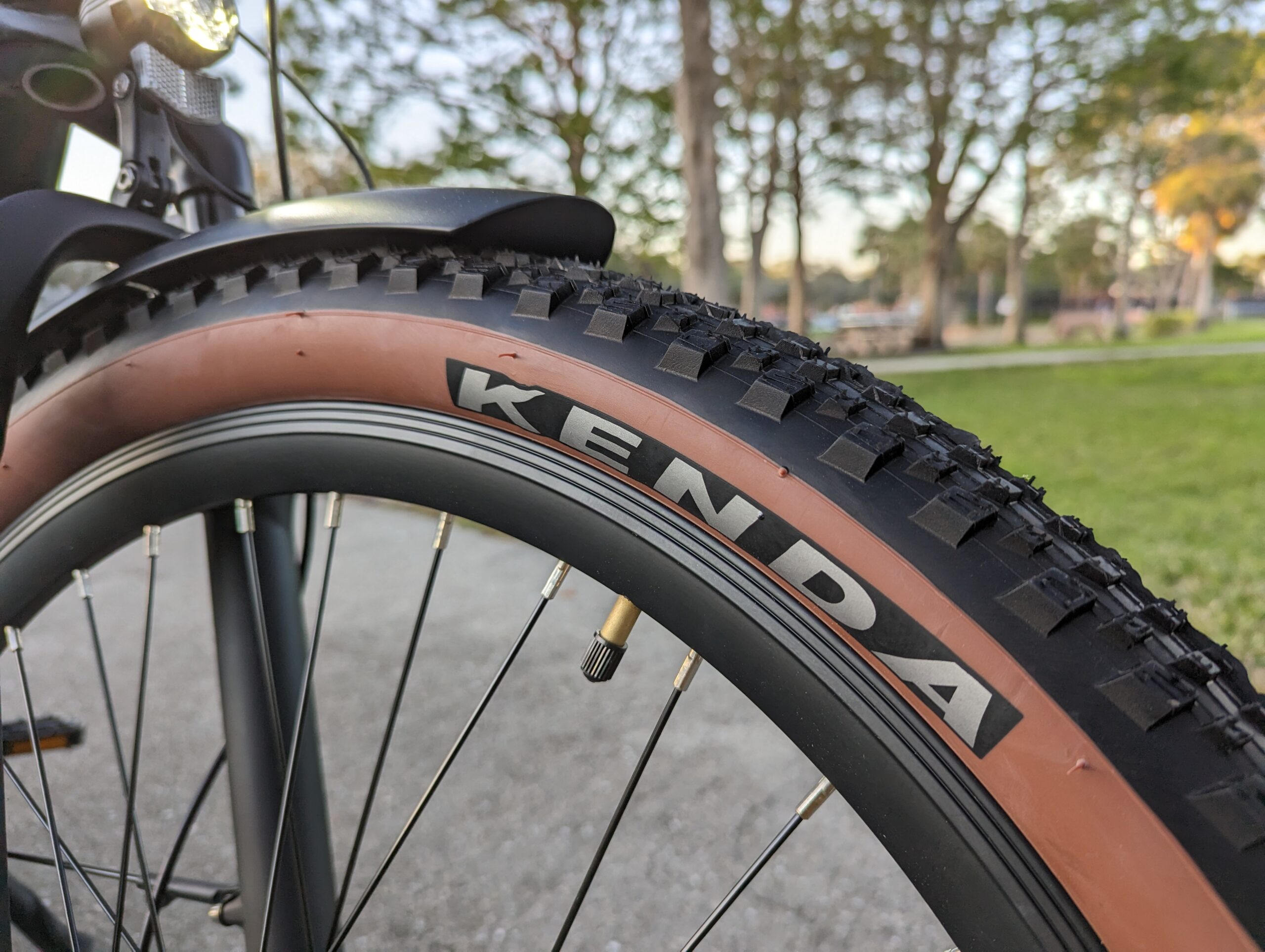 I love the green color of our Turris with the brown sidewalled tires. You can also purchase this ebike in white and grey, with all colorways sporting the brown sidewall tires.