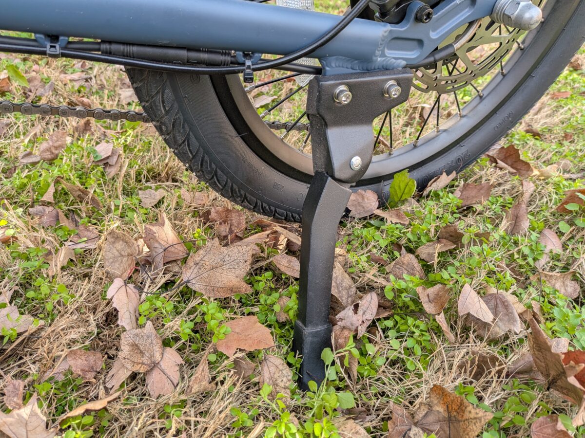 The Urbanfold looks like a proper ebike and feels reasonably solid despite the budget price tag. One of the most immediate benefits is the weight. It tips the scales at just 45 lbs, which is considerably lighter than many folding options. It also comes equipped with commuter necessities like integrated lighting, fenders, rear rack, and a kickstand that’s even stable on soft ground.